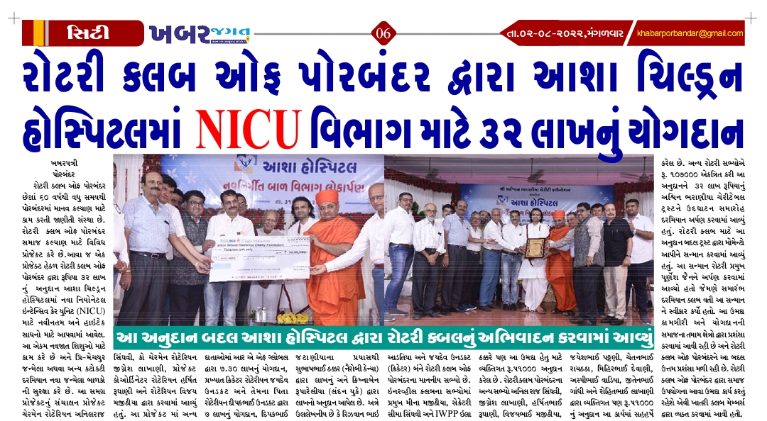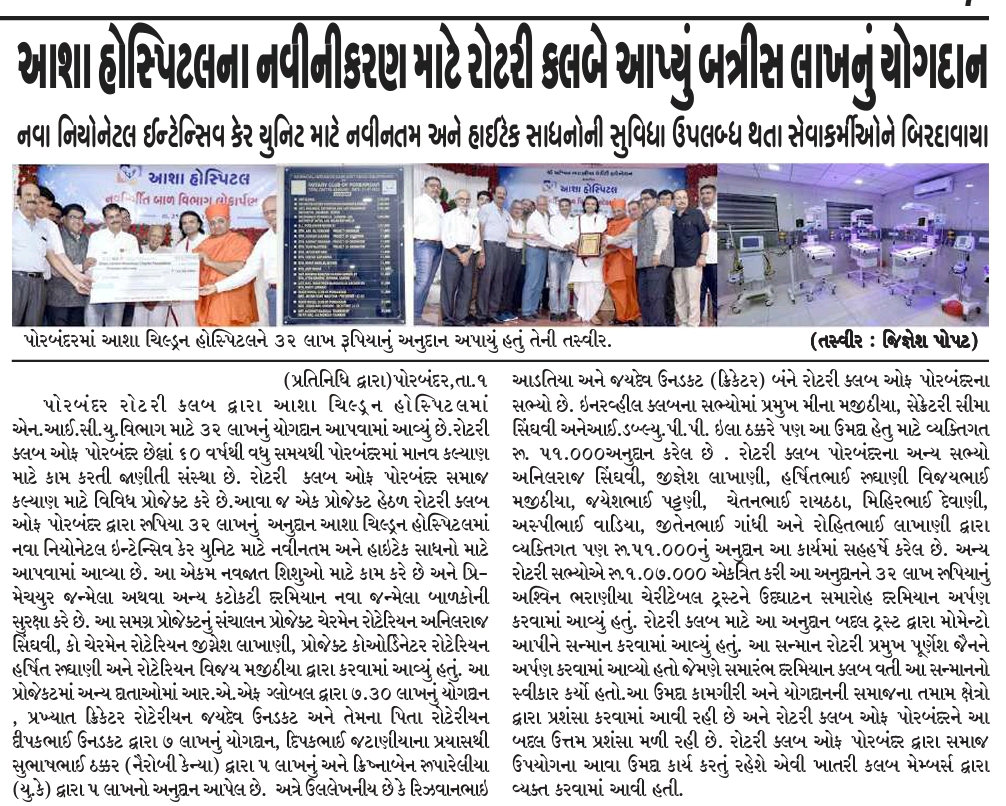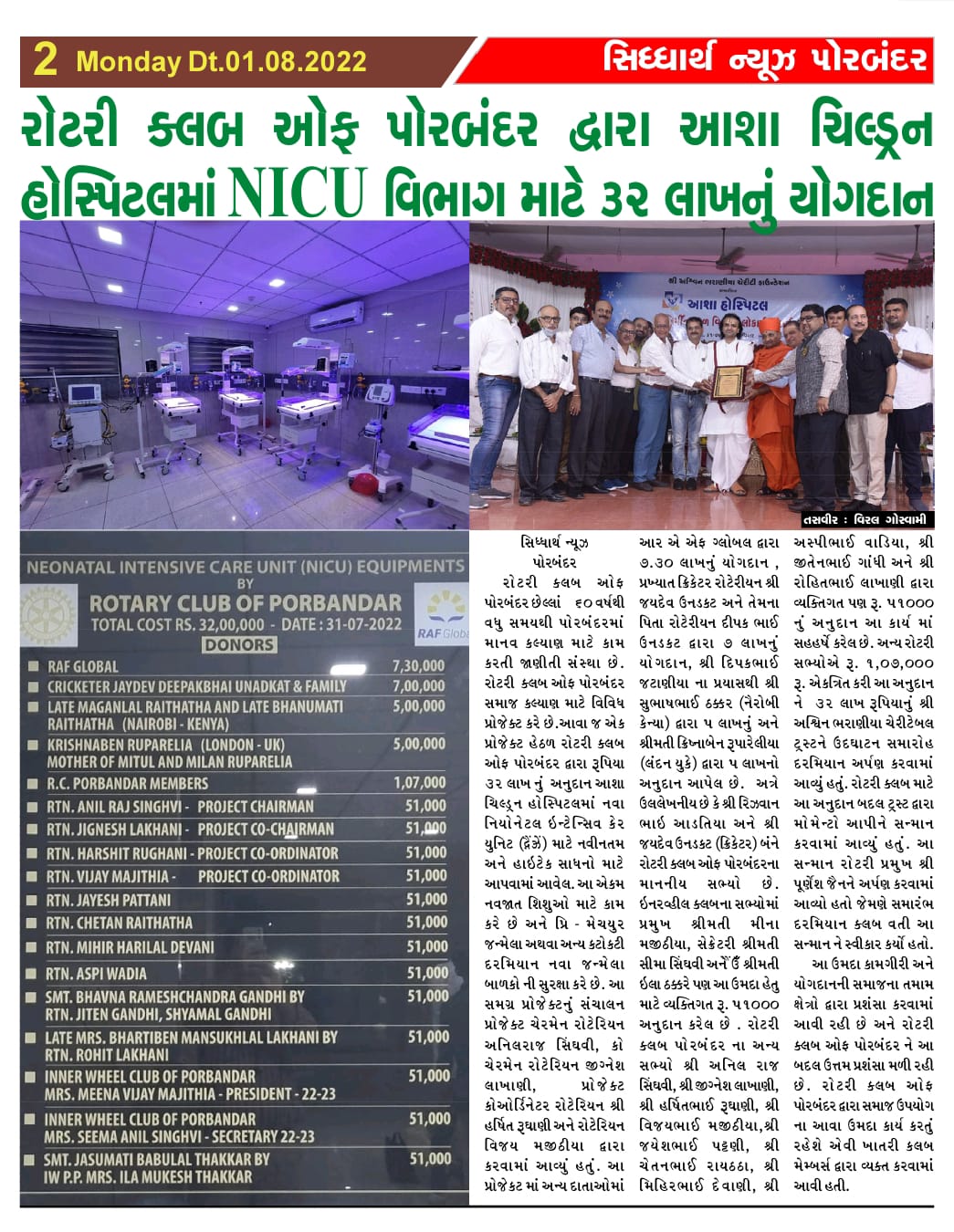 Project Name :Donation of 32 lakhs for Neonatal Intensive Care Unit - 31-JYLY-2022