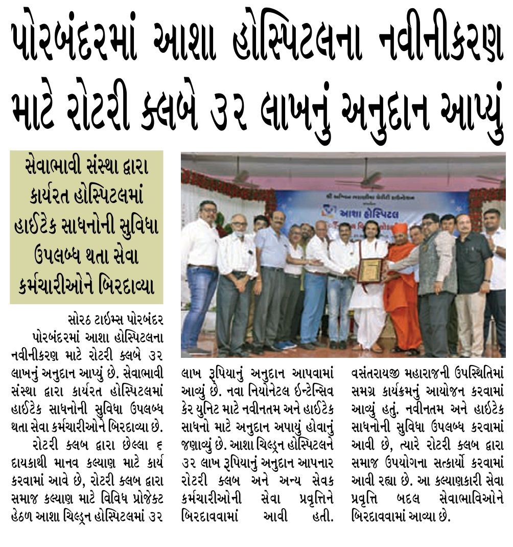 Project Name :Donation of 32 lakhs for Neonatal Intensive Care Unit on 31-july-2022