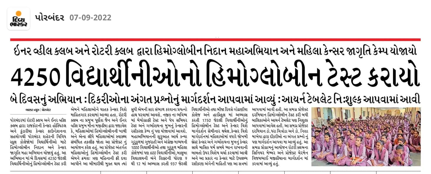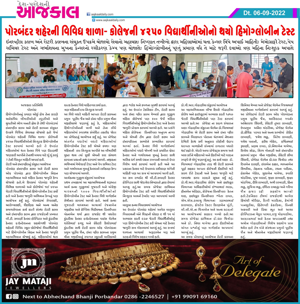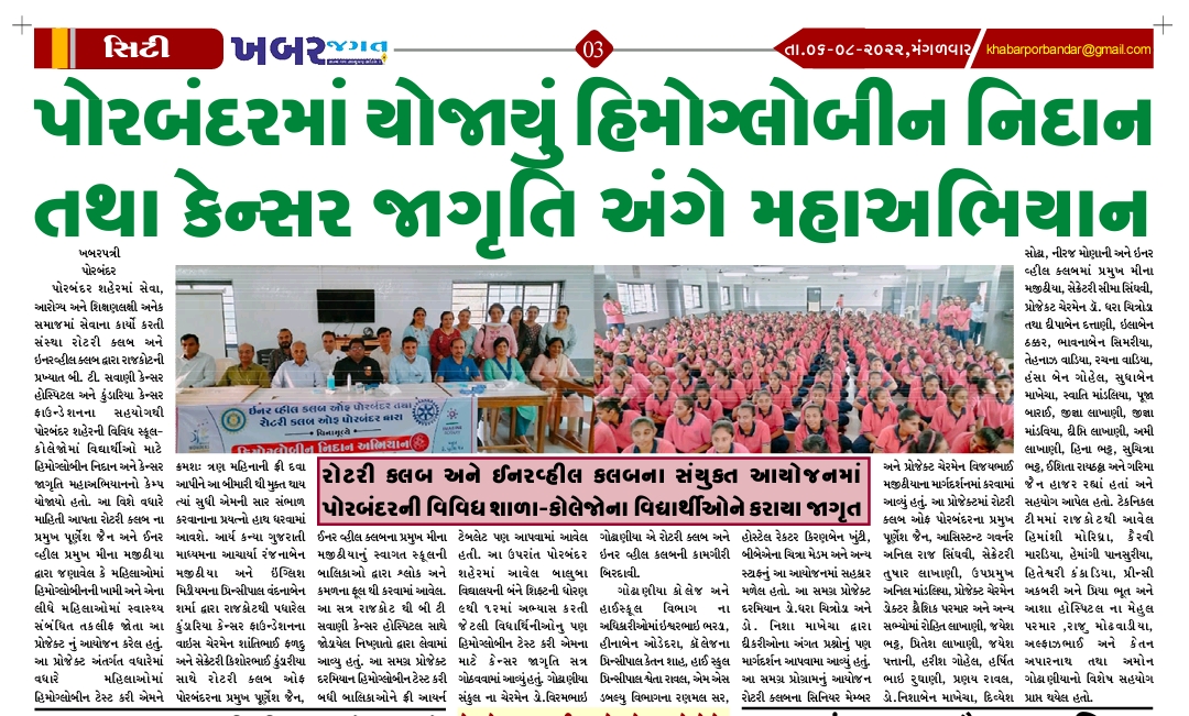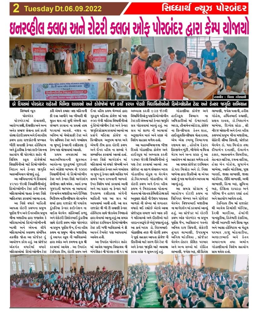 Project Name :Hemoglobin test Abhiyan and Cancer Awareness - 2-Sept-2022